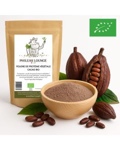 Poudre de Protéine Végétale Bio au Cacao, idéale pour enrichir Bubble Tea, smoothies, et pâtisseries en épicerie fine ou retail. Fabrication européenne, bio, végan et sans additif artificiel.